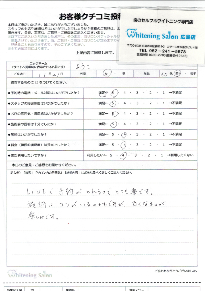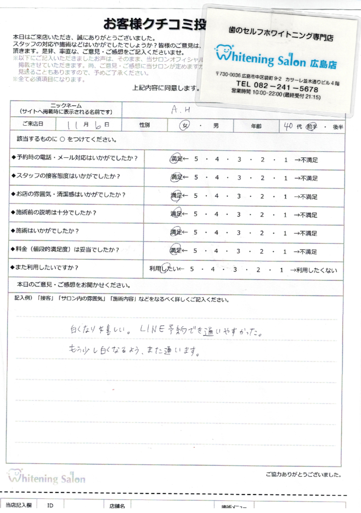 白くなり嬉しい。LINE予約でき通いやすかった。