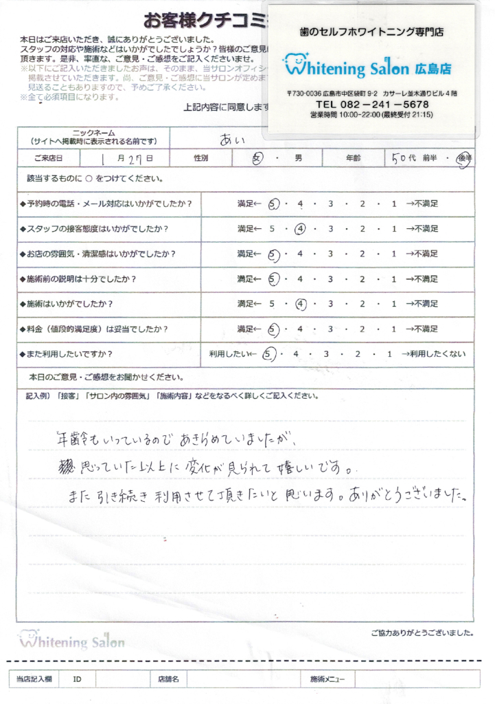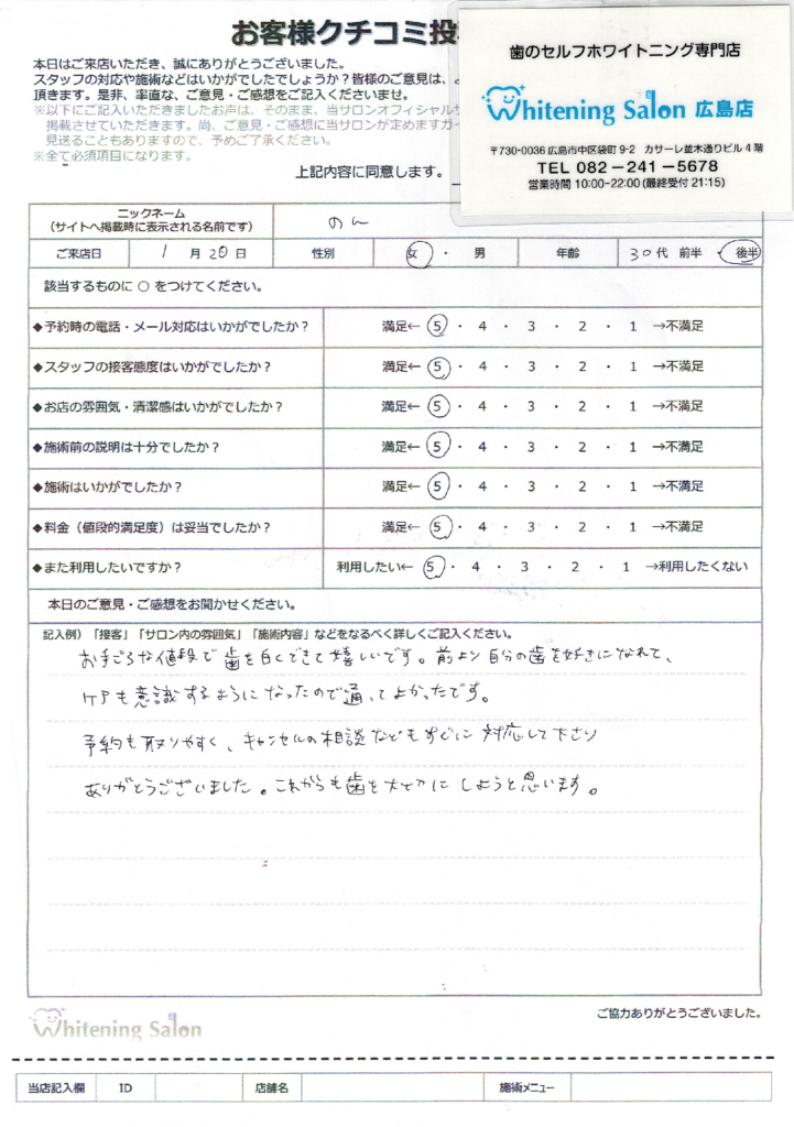 ございました!歯も白くなり満足です🙂
