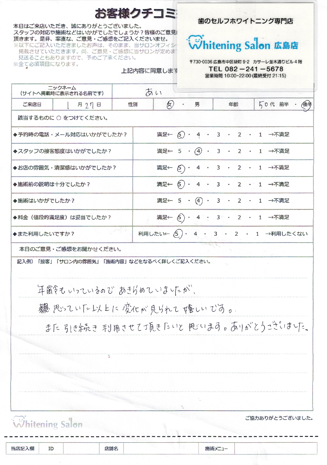 京都店も広島店もとても対応よく、通いやすかったです。
